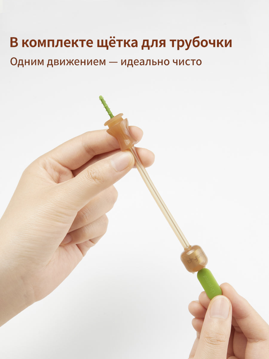 Широкое горлышко детского поильника и минимум составных частей (4 детали) позволяют легко его мыть без использования щеток. Комплект включает щетку для трубочки.