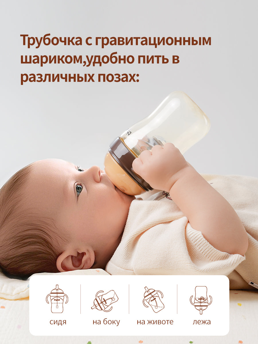 Специально разработанная цельная трубочка с гравитационным грузиком позволяет малышу пить из поильника с трубочкой в любом положении. Ваш ребенок будет пить не запрокидывая голову, что предотвращает захлебывание.
